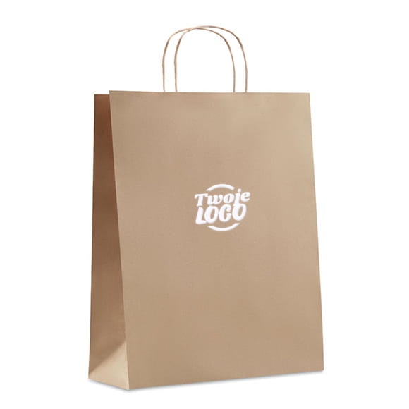 Duża papierowa torebka prezentowa. Torba papierowa to świetny sposób na podanie prezentu czy noszenie przedmiotów podczas zakupów. 90 gr / m².