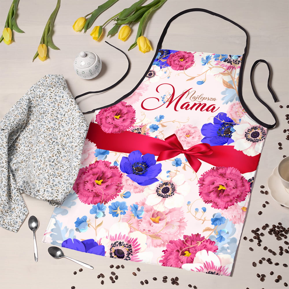 Wybierz wyjątkowy prezent na Dzień Matki, który jest praktyczny i przyda się każdej mamie – fartuch kuchenny z nadrukiem w piękny kwiatowy wzór.