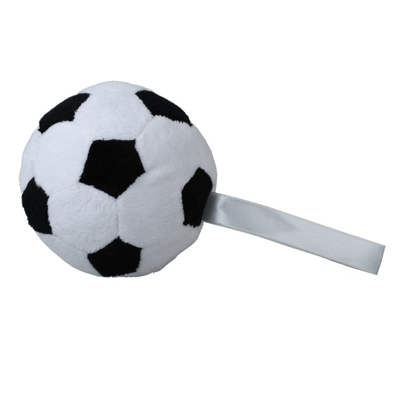 Wykonana z poliestru maskotka piłka. Wyposażona w tasiemkę z miejscem na logotyp.