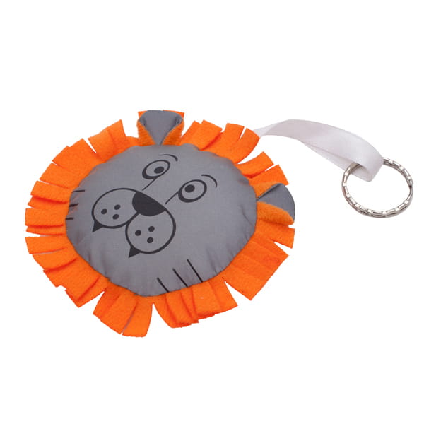 Maskotka „Lew” wykonana z odblaskowego materiału i filcu.
