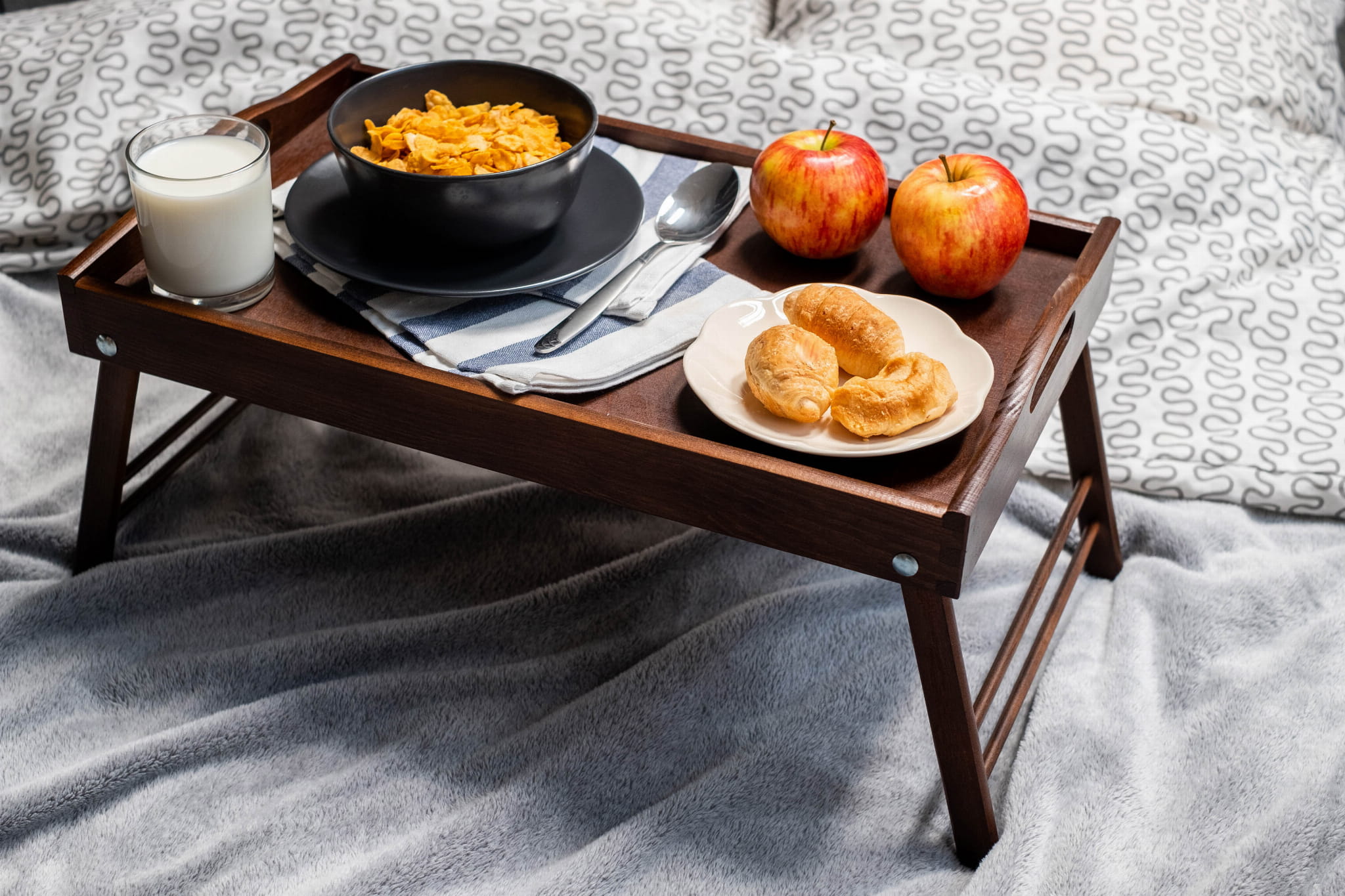 Stolik śniadaniowy ma indywidualny, spersonalizowany grawer, dzięki czemu stanowi oryginalny, a zarazem praktyczny prezent dla ukochanej osoby, w dniu ślubu lub z okazji urodzin, a także pamiątkę na długie lata!