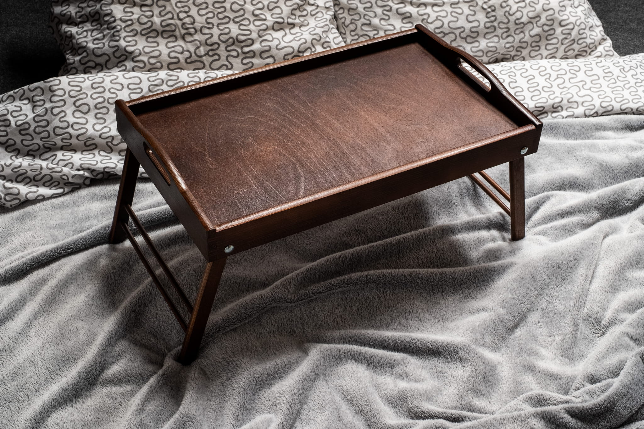Dodatkowym atutem są rozkładane nóżki stolika, dzięki którym idealnie sprawdzi się jako taca pod śniadanie do łóżka lub jako podkładka pod twojego laptopa!