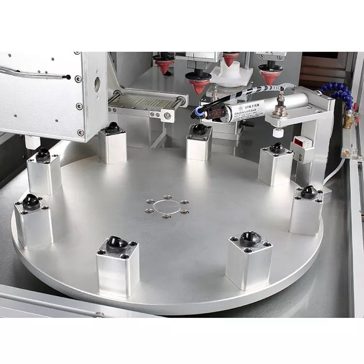 HLE-300-45 to automatyczna, szybkobieżna tamponiarka obrotowa. Może pracować z dużą prędkością bez żadnych wibracji. Nadaje się do masowego nanoszenia nadruków między innymi na zestawy słuchawkowe, pondrive'y i inne małe produkty.