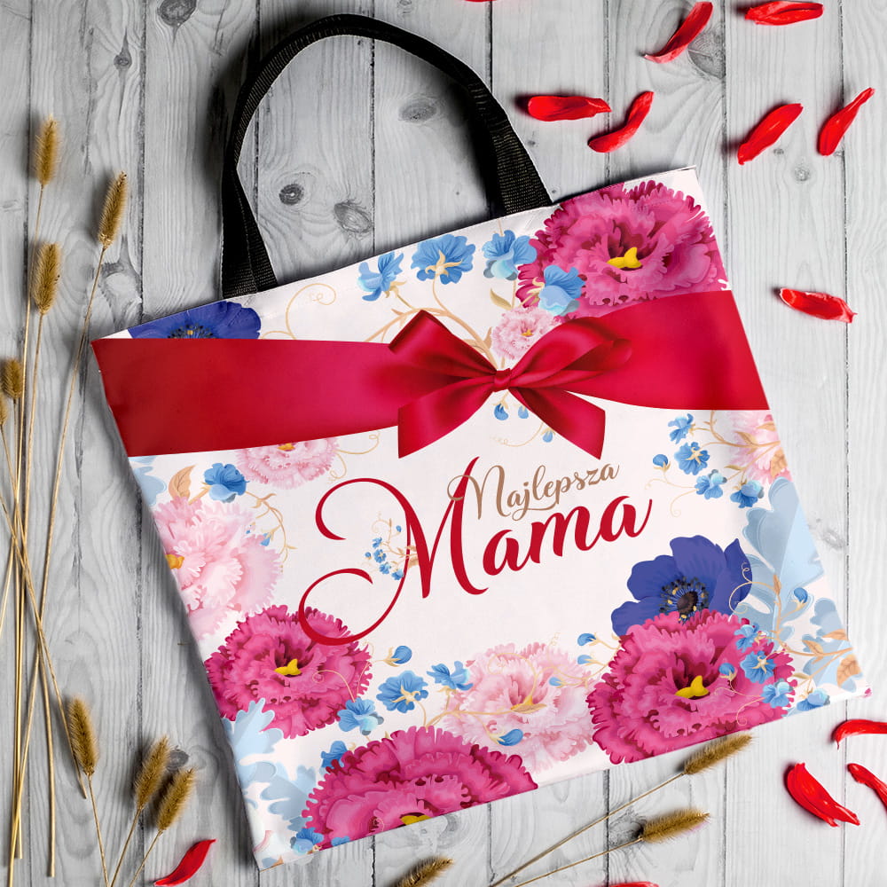 Torba na zakupy z nadrukiem to doskonały prezent dla każdej mamy. Będzie jej towarzyszyć podczas zakupów, ale także w drodze do pracy czy na spacerze.