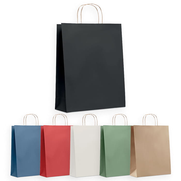 Duża papierowa torebka prezentowa. Torba papierowa to świetny sposób na podanie prezentu czy noszenie przedmiotów podczas zakupów. 90 gr / m².